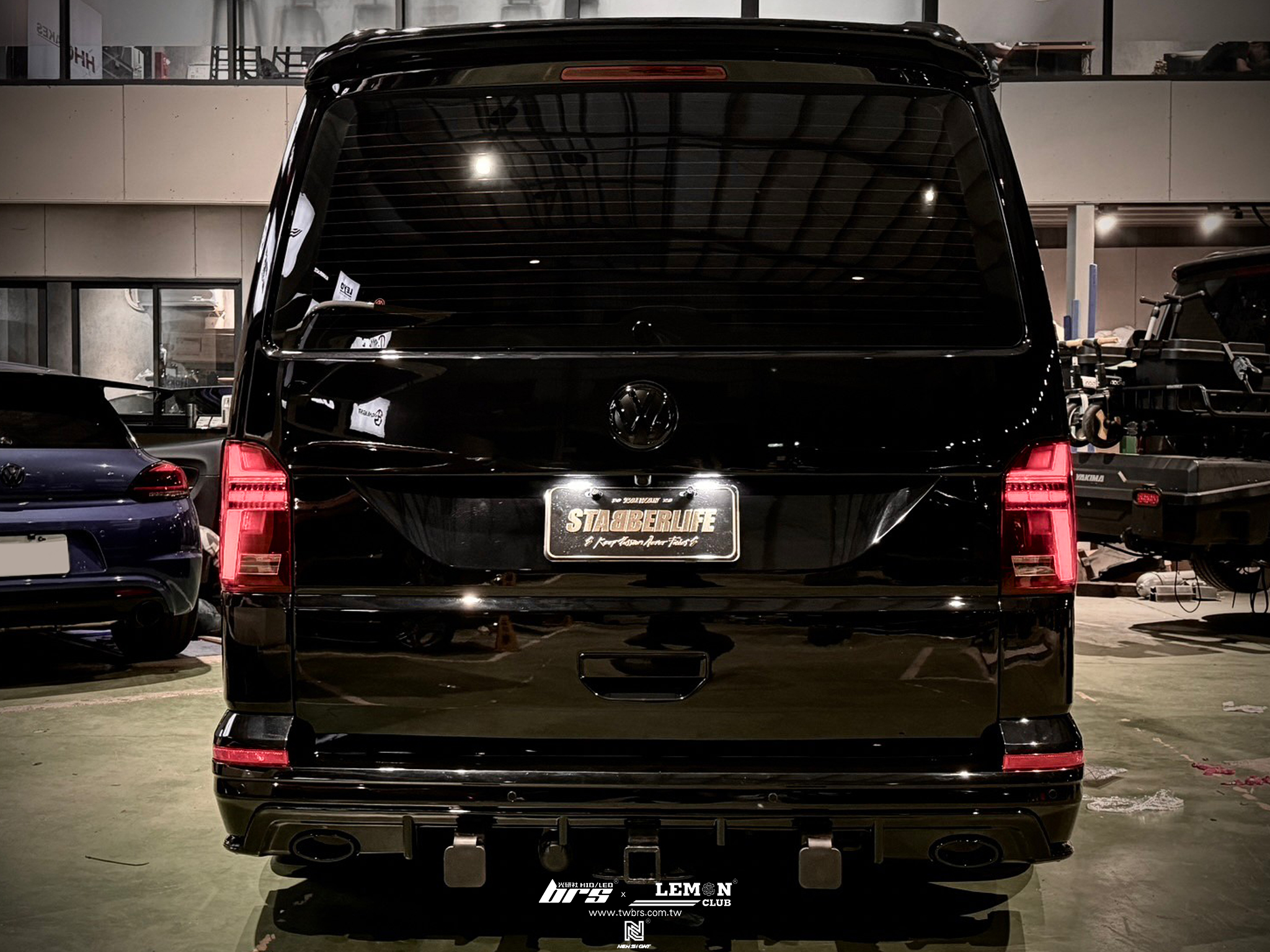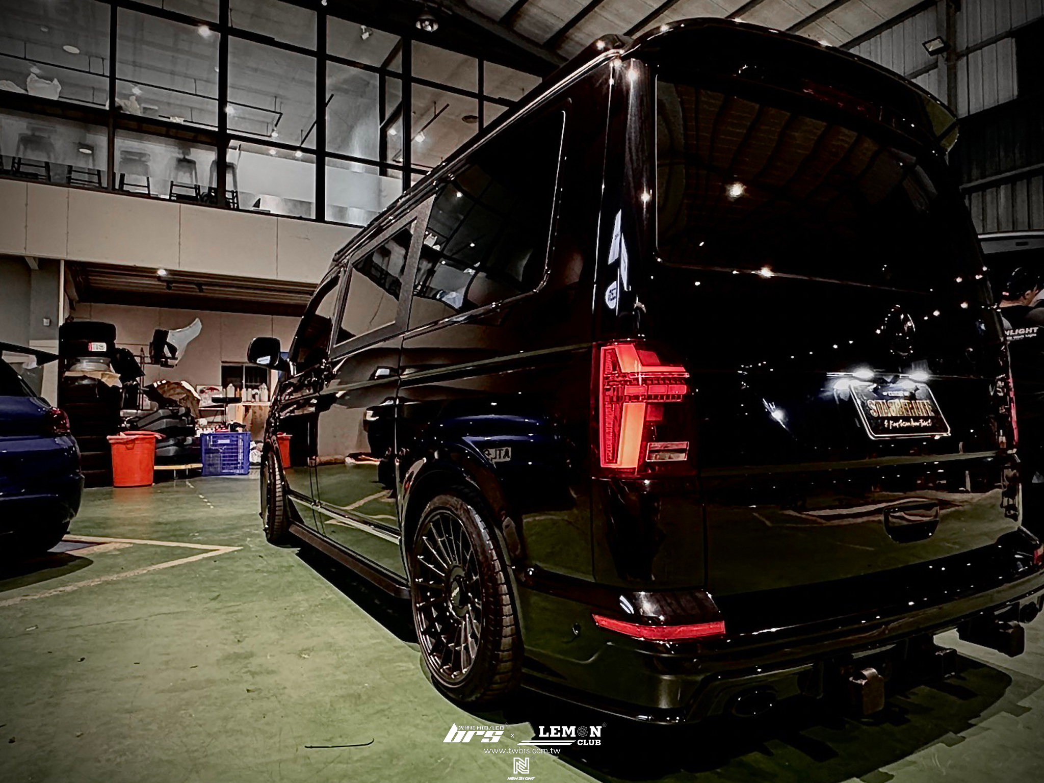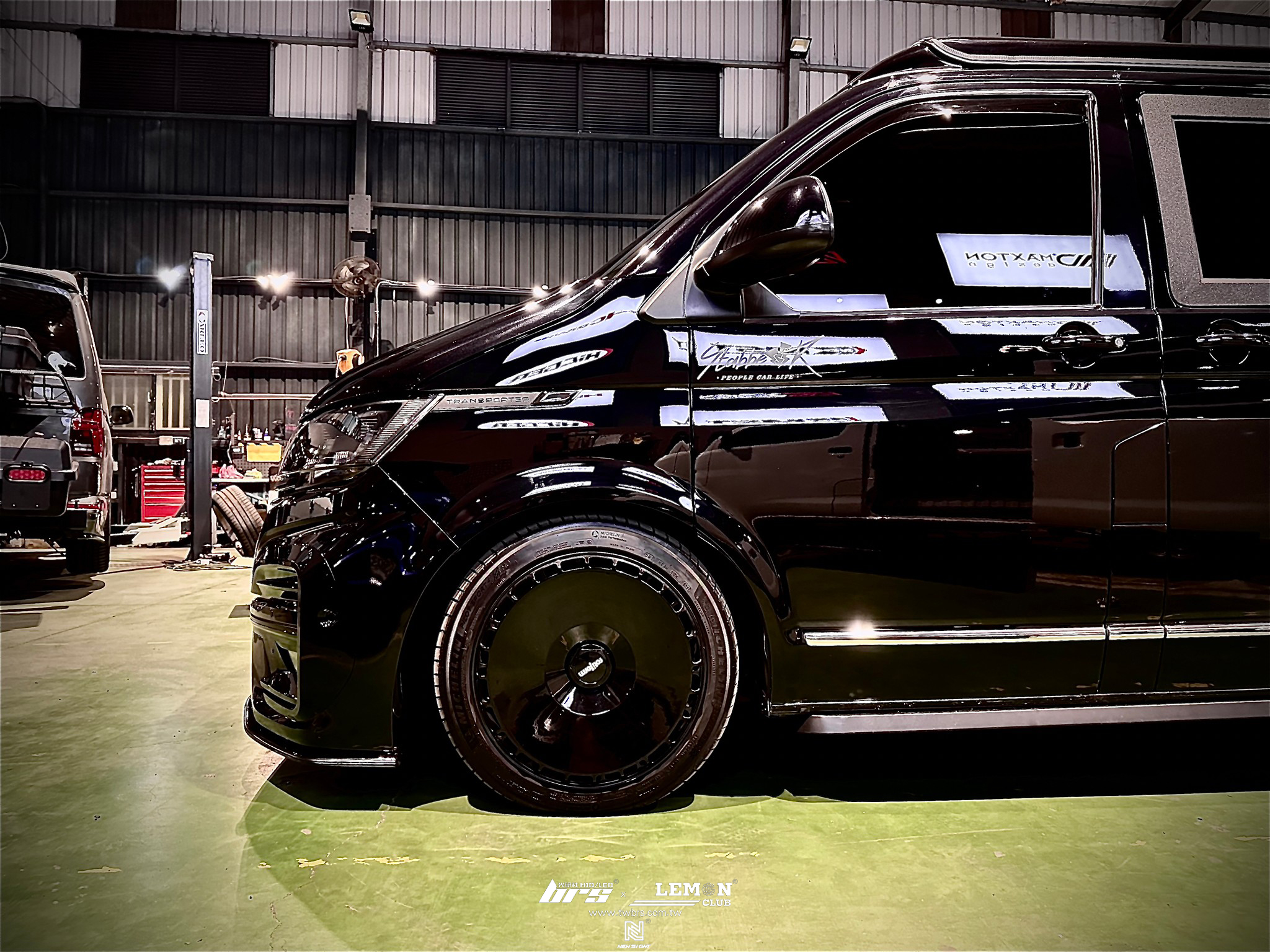 Volkswagen T5 Multivan SWB 安裝 T6.1 LV-R全套(亮黑搭配消光黑線條)+英國風尾翼+英國風側桿