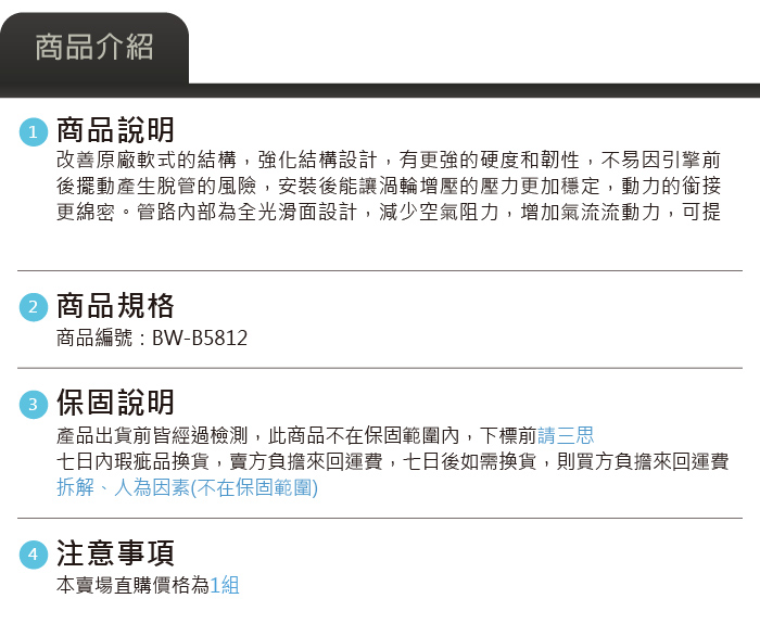 免運 免工資 BW-B5812 B58 MST 進氣管