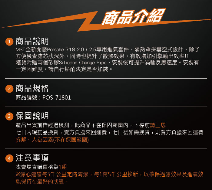 免運 免工資 POS-71801 718 MST進氣系統