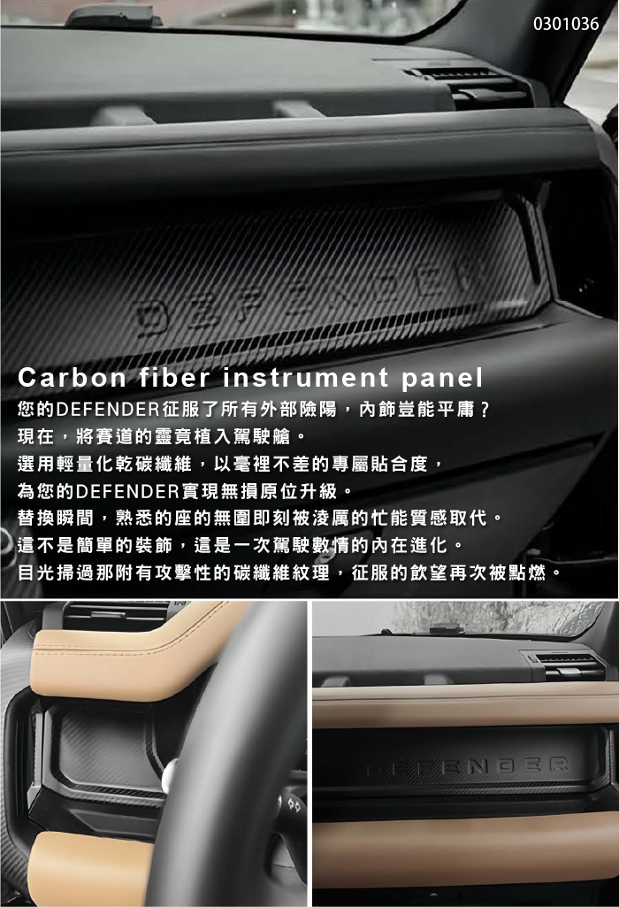 選用經量化幹碳纖維,以毫裡不差的專屬貼合度,為您的20-25款路虎衛土實現無損原位升級。
