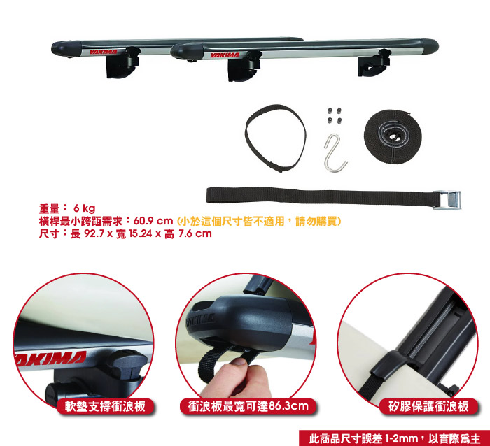 ● 最大可裝載86cm寬衝浪板