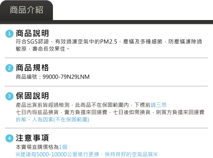 99000-79N29LNM 奈米銀抗菌活性碳冷氣濾芯