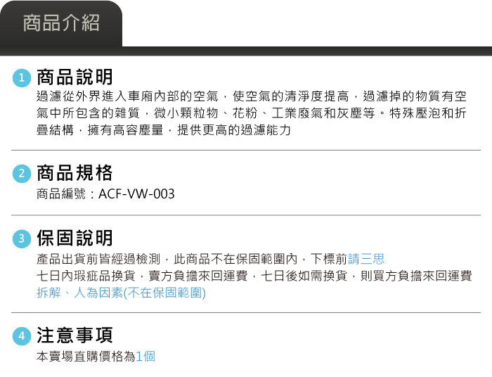 ACF-VW-003 PQ冷氣濾芯