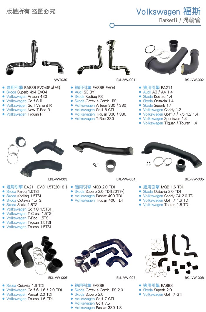 BKL-VW-007 EA888 渦輪管(三支)