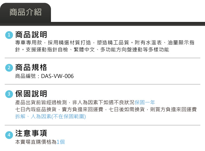 DAS-VW-006 Golf 7 GTI 彩色液晶儀表板(原廠件)