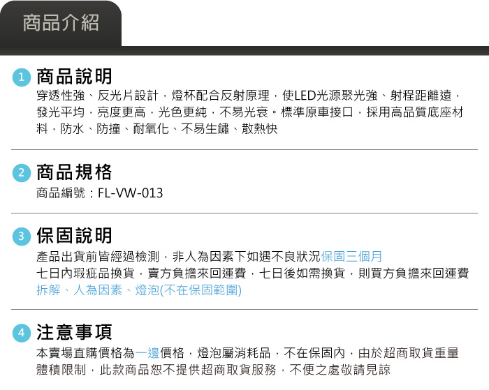 FL-VW-013 Caddy C4 霧燈總成