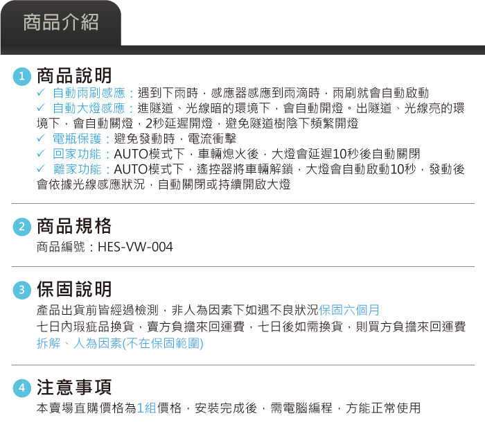 HES-VW-004 Golf 7 自動大燈開關模組