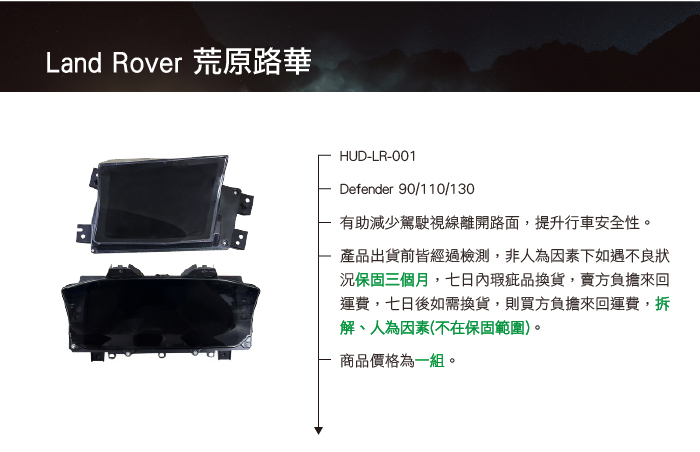 HUD-LR-001 Defender 原廠抬頭顯示器