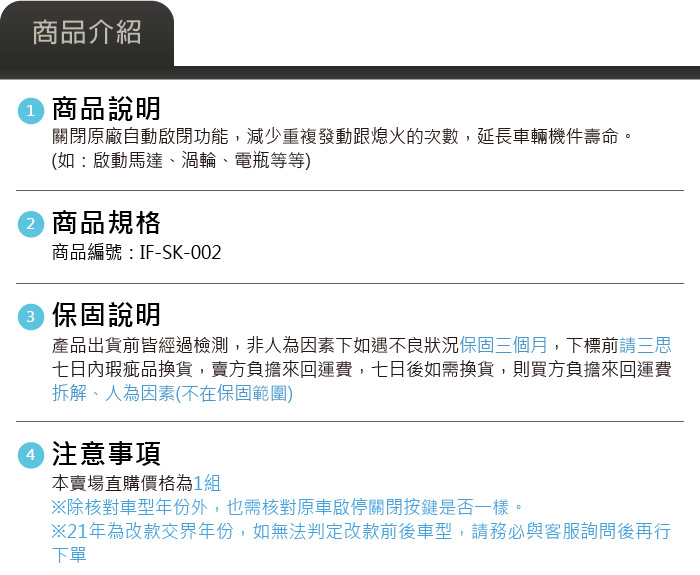 IF-SK-001 Kamiq 怠速熄火啟停自動關閉器