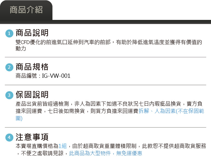 IG-VW-001 Racingline R600 進氣組