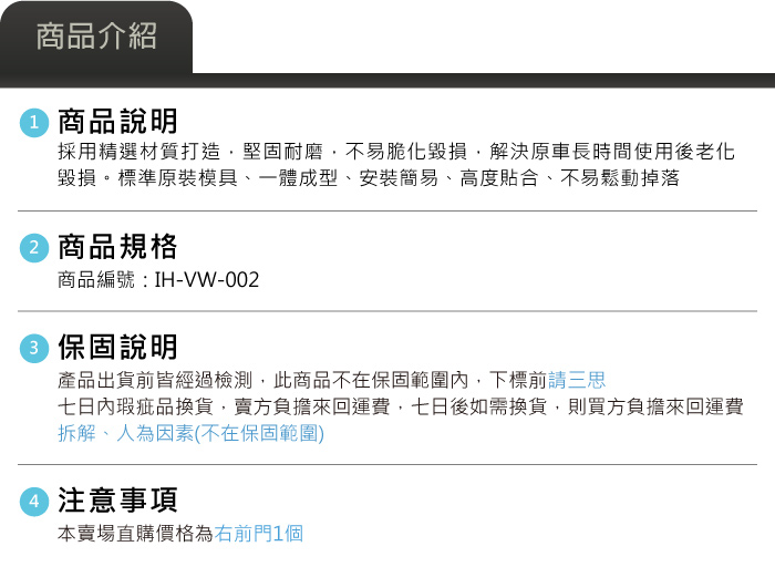 IH-VW-002 Golf 7 內把手-右前門