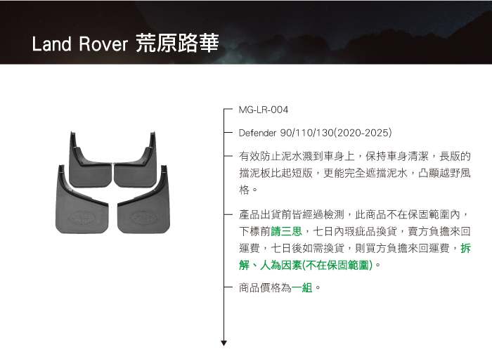 MG-LR-004 Defender 長擋泥板-素黑