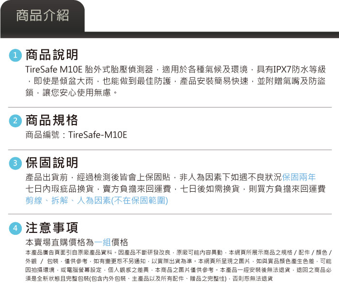 PAPAGO TireSafe M10E 獨立型機車用胎壓偵測器(胎外式)