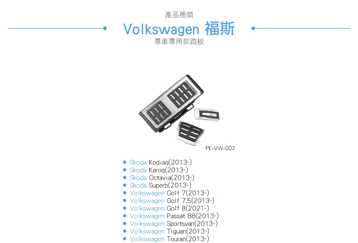 PE-VW-002 MQB鋁合金踏板(三件式)