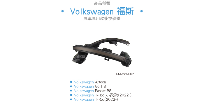 RM-VW-002 Passat B8 後視鏡側燈-流水款