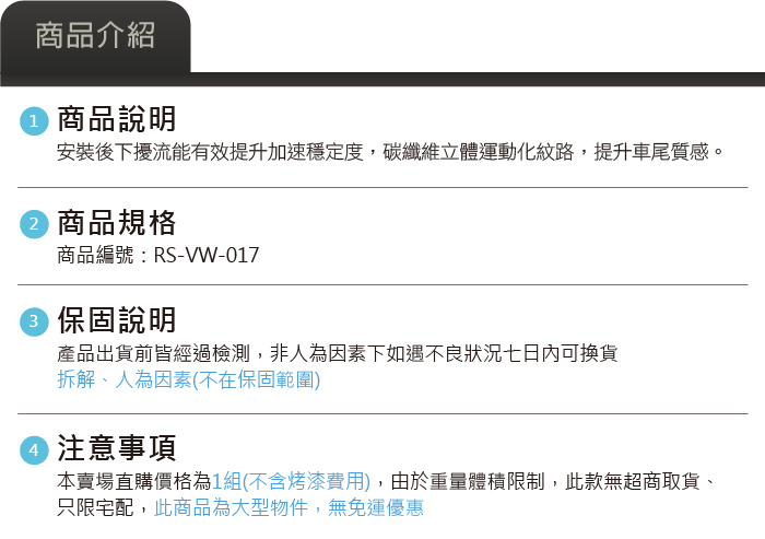 RS-VW-017 Golf 7 GTI 雙出卡夢後下擾流