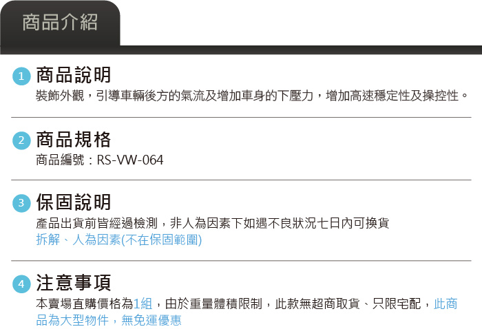 RS-VW-021 TCR副廠後下擾流