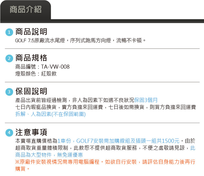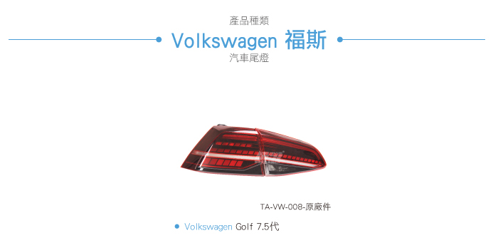 TA-VW-008 Golf 7.5 原廠汽車尾燈-流水款