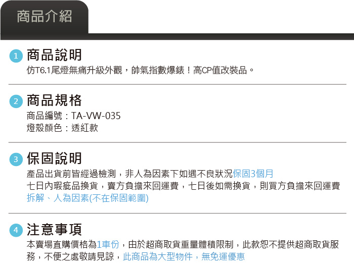 TA-VW-035 T5後期 LED尾燈-透紅款