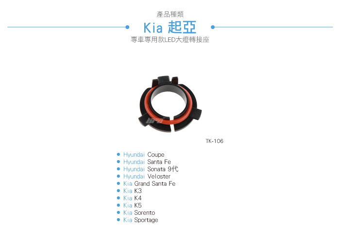 TK-106 H7 KIA LED 大燈轉接座