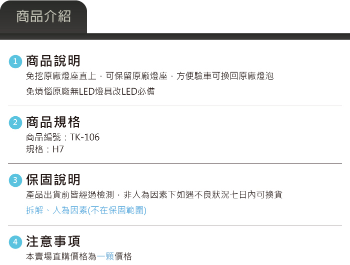 ● 方便驗車可換回原廠燈泡
