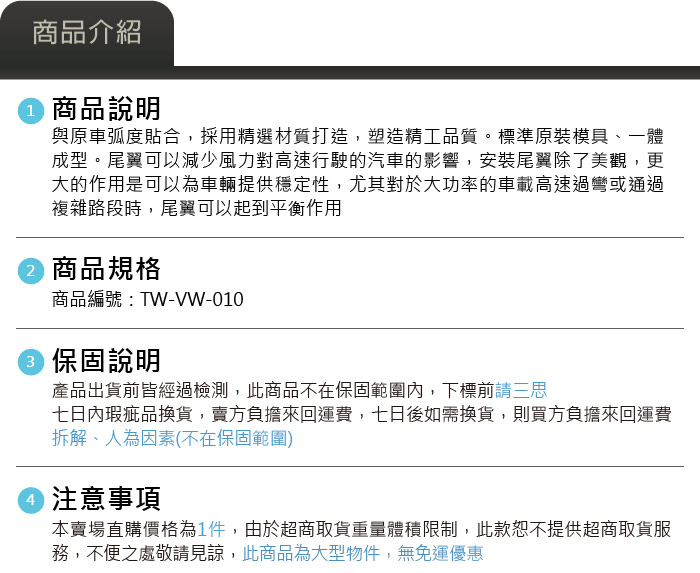 TW-VW-010 GOLF 7 ASPEC款 尾翼