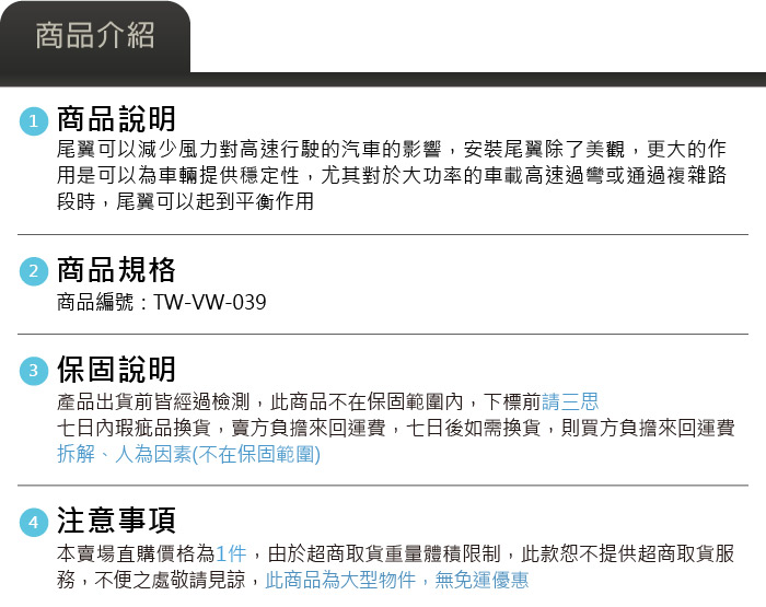 TW-VW-039 T-Roc 類MAX 尾翼