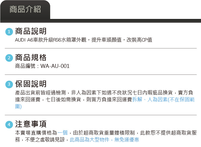 WA-AU-001 A6 改 RS6 水箱罩