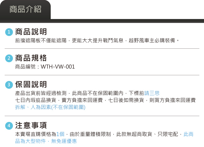 WTH-VW-001 越野風前擋遮陽板