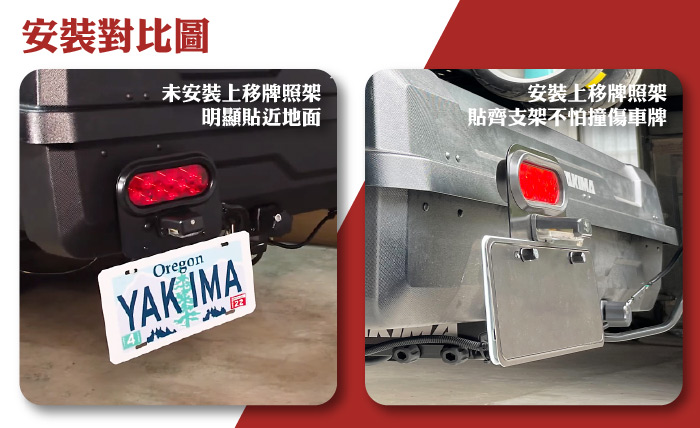 ● 安裝後不怕車牌刮到地面